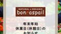 トピックス ★ご予約特典あり★おせち予約受付中! 毎度ボンラスパイユをご利用いただきまして、誠にありがとうございます。ボンラスパイユでは、ただいま自然派おせちの早期予約を受付中です!ご予約特典として、12/6(金)までポイント5倍を進呈!お近くにお越しの際は新宿店、吉祥寺店、永山店、横浜店... 2024.11.01 トピックス