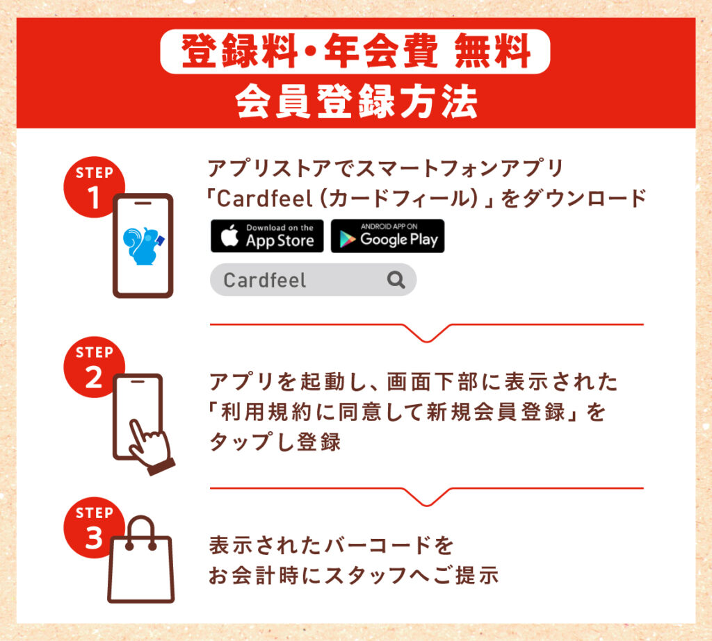 ※その場で新規入会も可能です。(アプリ会員は無料で登録できます)